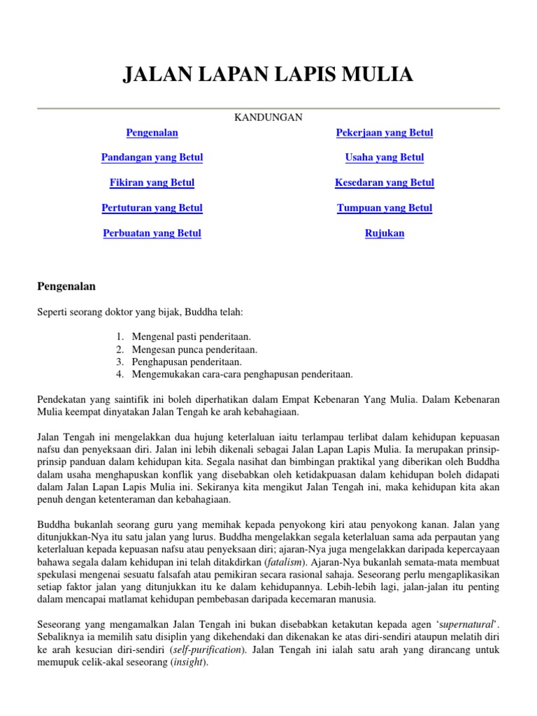 Jalan Lapan Lapis Mulia Pdf Jalan Lapan Lapis Mulia Kandungan Pengenalan Pekerjaan Yang Betul Pandangan Yang Betul Usaha Yang Betul Fikiran Yang Course Hero